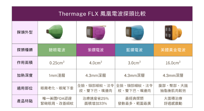 Thermage FLX鳳凰電波4色探頭詳解
